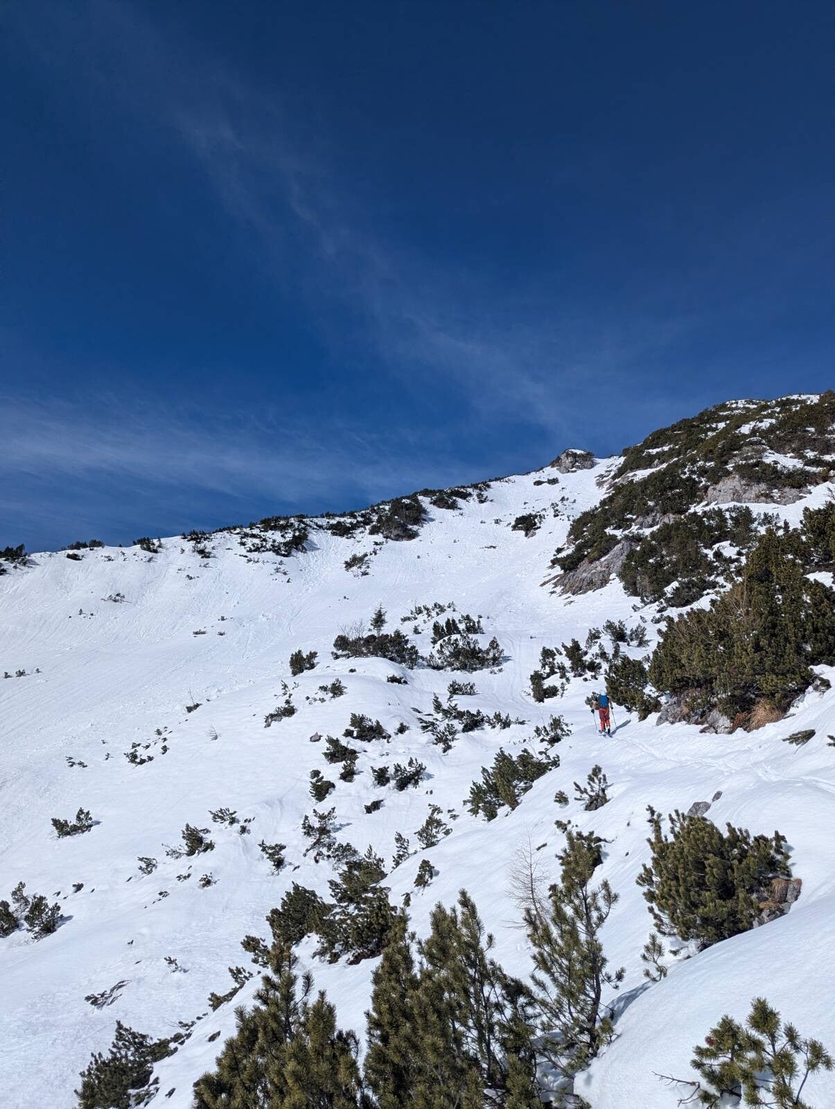 Schnee technisch in Ordnung. Südhang Querfahrt und auf das Sonnenplatzerl vor der Grabneralm.